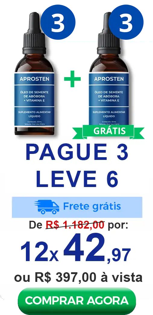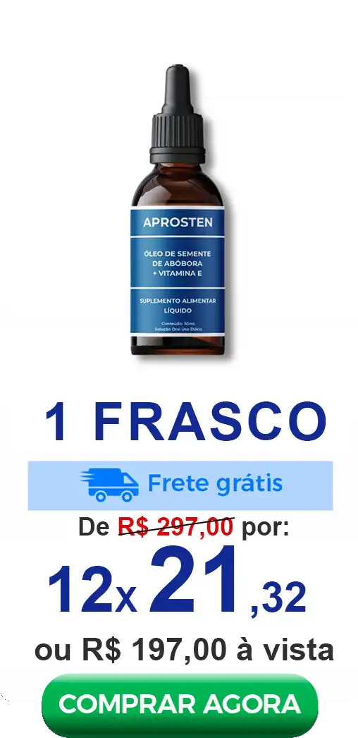 Aprosten apresenta fórmula natural e não apresenta efeitos colaterais. O produto é indicado para homens acima dos 30 anos com sintomas de próstata ou que deseja prevenir o câncer de próstata